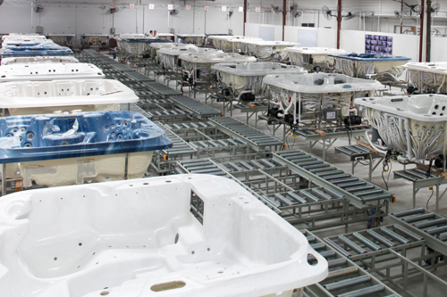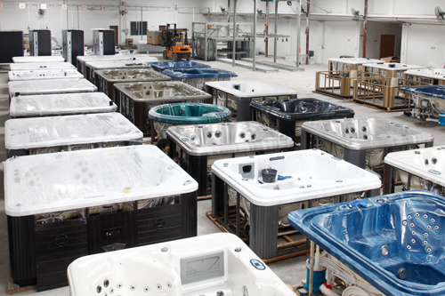 In the past 10 years, we are from a small sanitary ware factory become a leading big manufacturer of hot tubs, swim spas, indoor spas, spa Gazebos and other products, with over 200 employees, 380,500 square feet of workshops. we are the first one in China to build 5 production lines to produce hot tubs, assure the whole production, from vacuuming, hand-roll FRP, drilling, assembling, testing, skirting, dry-up, cleaning and packing will be finished in a line. With efficient production line and experienced workers, our current producing capacity is 650 units of hot tubs and 80 units of swim spas per month.